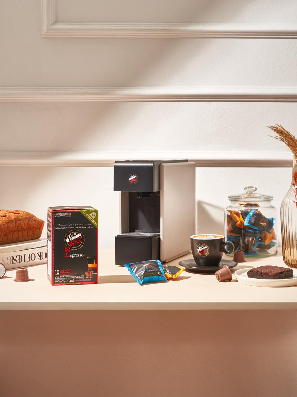 Caffè Vergnano Tre Espresso Nera is the perfect combination of style and performance. Compact and elegant, it delivers authentic Italian espresso at the touch of a button. Designed for Caffè Vergnano capsules, it guarantees the ideal extraction, rich crema, and consistent flavor in every cup.